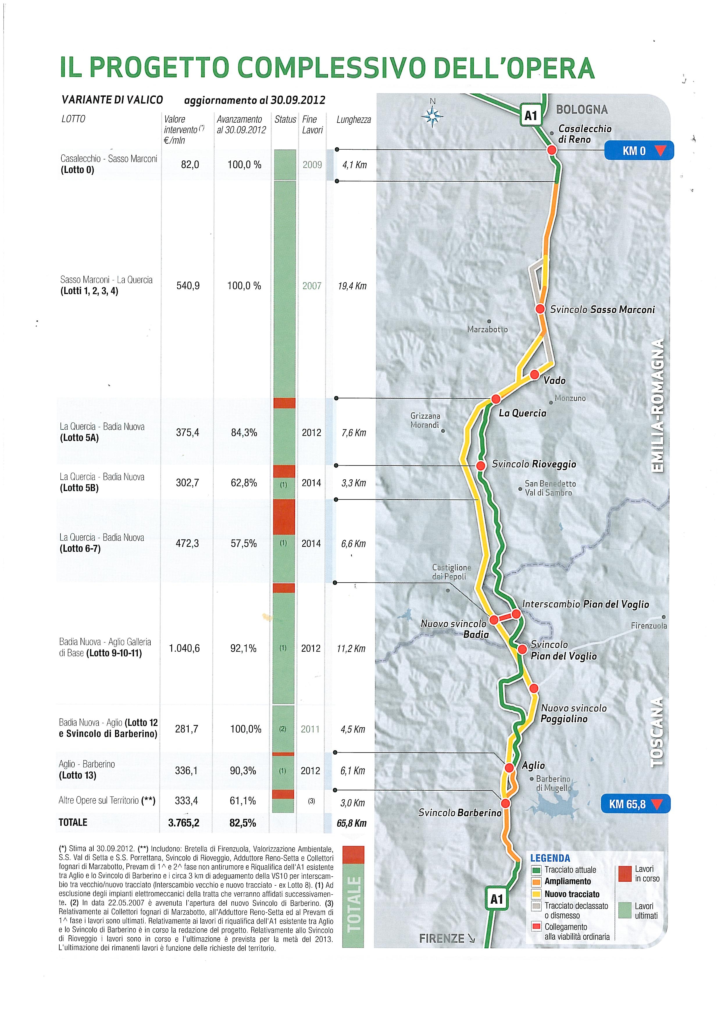 realizzazione di una nuova autostrada a tre corsie riservata al traffico in direzione Sud tra Aglio e Barberino, dedicando così l’autostrada esistente al traffico in direzione Nord su quattro corsie;