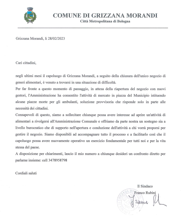 relativa al negozio di generi alimentari nel capoluogo di Grizzana Morandi