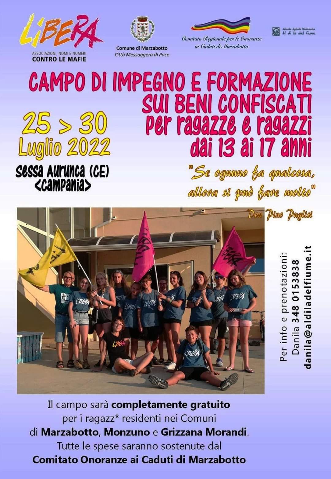Campo estivo di impegno e formazione sui beni confiscati dal 25 al 30 luglio a Sessa Aurunca(CE)