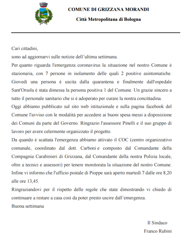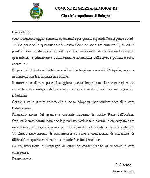 Comune di Grizzana Morandi:  Via Pietrafitta, 52 40030 Grizzana Morandi - Bologna  P.I. 00530321207  tel. 051 6730311  fax 051 913014