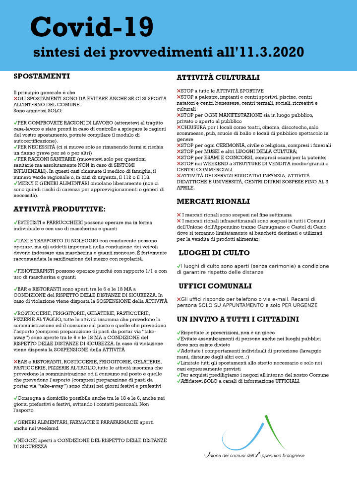 Leggi le prescrizioni condivise dai Sindaci dell'Unione dei Comuni dell'Appennino Bolognese