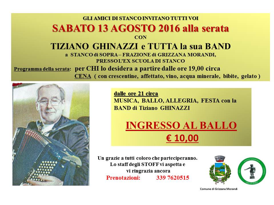 13 agosto 2016. Cena e serata musicale con la band di Tiziano Ghinazzi.