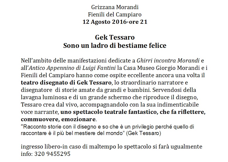 "Io sono un ladro di bestiame felice". Venerdì 12 agosto 2016 ore 21 presso i Fienili del Campiaro. Ingresso gratuito.