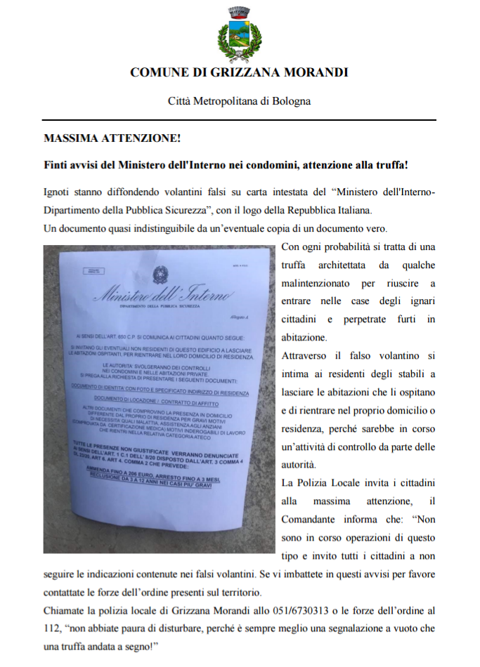 Finti avvisi del Ministero degli Interni nei condomini, attenzione alla truffa!