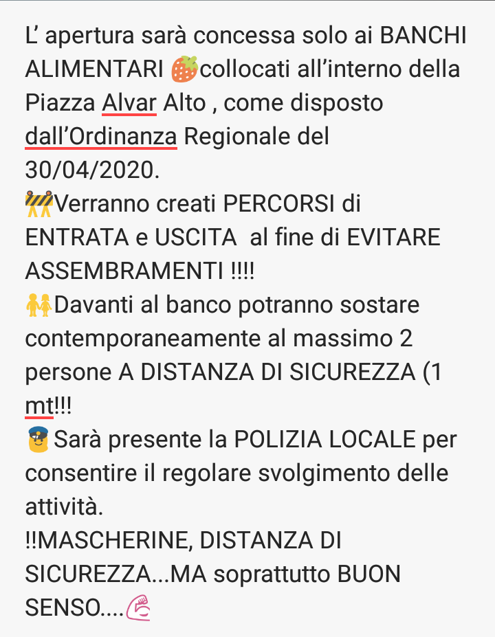 VENERDÌ 08/05/2020 RIAPERTURA MERCATO SETTIMANALE DI RIOLA PONTE-GRIZZANA MORANDI!!