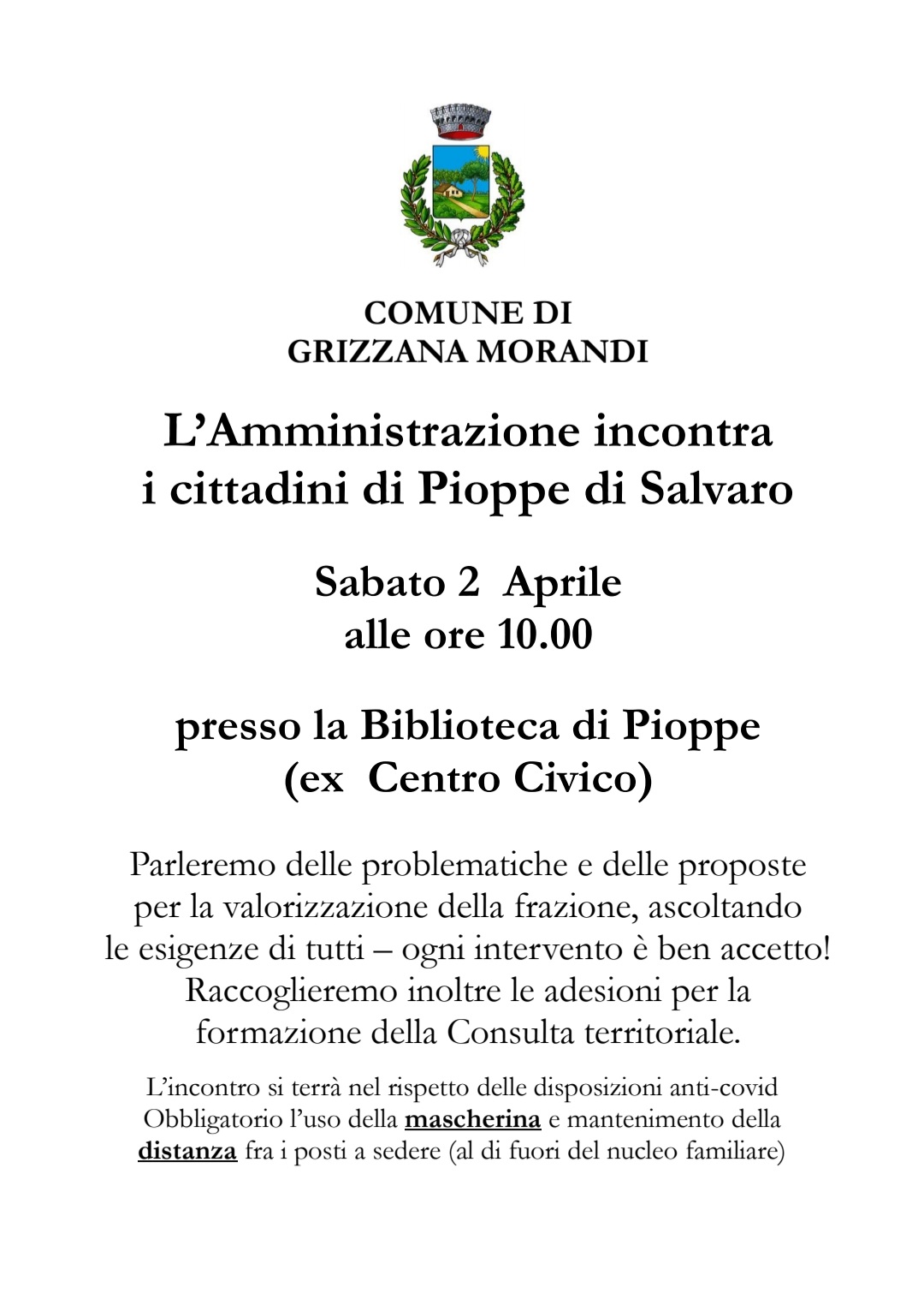 L'amministrazione incontra i cittadini sabato 2 aprile ore 10 a Pioppe di Salvaro.