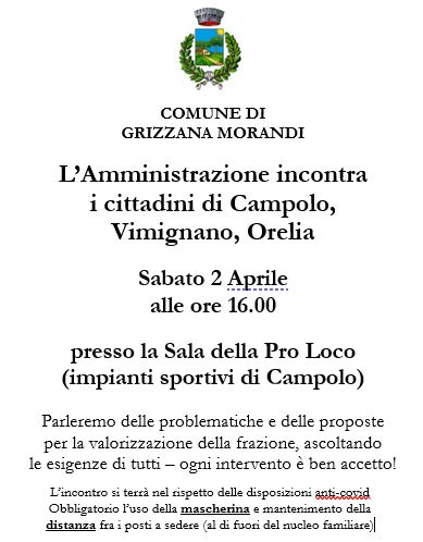 L'amministrazione incontra i cittadini sabato 2 aprile 2022 alle 16.30 a Campolo