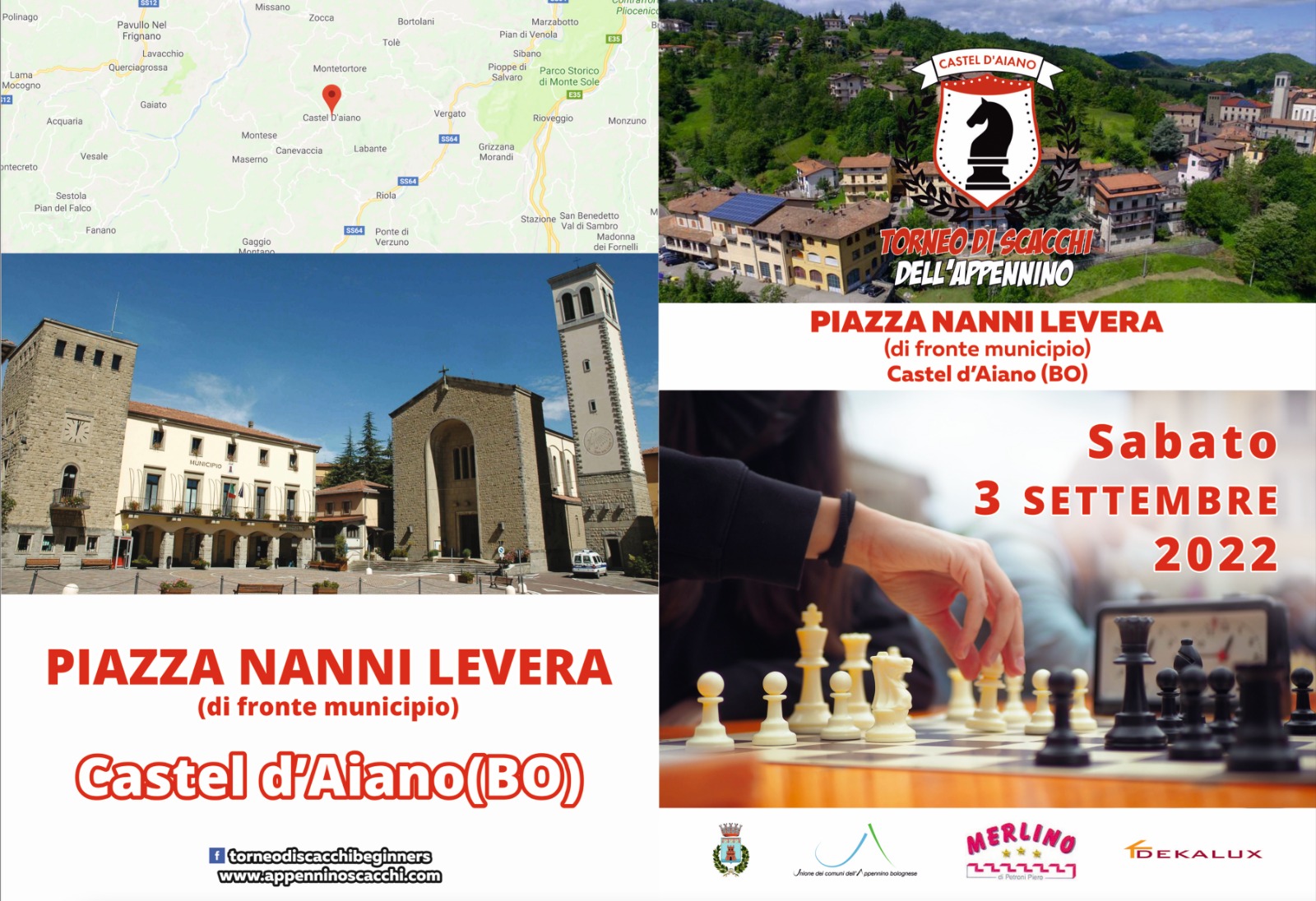 Per il settimo anno consecutivo torna, a Castel d’Aiano, il Torneo di scacchi dell'Appennino, l’appuntamento è per sabato 3 settembre dalle ore 10.00.